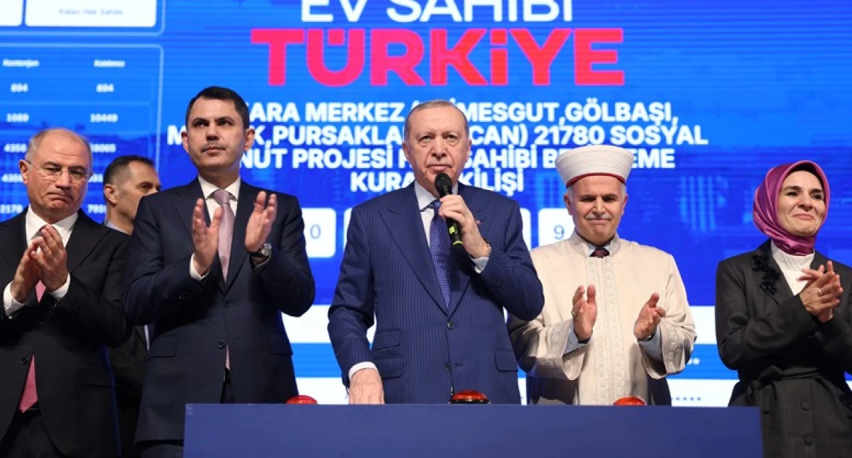 Ev Sahibi Türkiye kampanyasına gösterilen yoğun ilginin aynı zamanda hükûmetlerine olan güvenin de bir göstergesi olduğunu dile getiren Cumhurbaşkanı Erdoğan, şöyle devam etti: "Şehirlerimizin çoğunda kuralarımızı çektik. Hak sahiplerimizi belirledik. Bugün de sizlerle birlikte Etimesgut, Gölbaşı, Mamak, Pursaklar ve Sincan'da toplam 21 bin 780, Sincan Temelli'de 4 bin, Polatlı'da 1500, Beypazarı'nda 750, Çubuk ve Elmadağ'da toplam 1000, Kahramankazan'da 300, Nallıhan'da 200, Çayırhan'da 100, Şereflikoçhisar ve Çamlıdere'de toplam 400, Güdül'de 142, Bala'da 110, Evren'de 41, Akyurt, Ayaş, Haymana, Kalecik ve Kızılcahamam'da ise toplam 750 olmak üzere Ankara genelindeki 31 bin 73 konutumuzun kuralarını çekeceğiz. Yeni evlerimizin hayırlı uğurlu olmasını diliyorum. Şunu da ayrıca hatırlatmak istiyorum. 500 Bin Sosyal Konut Projemizde sadece bina yapmıyoruz. Değerlerimizi ve kültürümüzü tüm renkleriyle yaşatacak mahalleler de inşa ediyoruz. İçinde çocuklarımızın neşeyle oynayacağı, gençlerimizin spor yapacağı, yaşlılarımızın sağlık hizmeti alacağı ve vatandaşlarımızın misafirlerini ağırlayacağı mahalle konaklarımızı da şehirlerimize kazandırıyoruz. Bunlar da ülkemize, milletimize hayırlı uğurlu olsun.