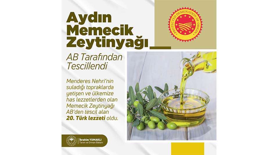 Aydın’ın ‘Memecik Zeytinyağı’, AB tescilini aldı. Tarım Bakanı Yumaklı, bu gelişmenin Aydın’a ve ülkemize hayırlı olmasını diledi