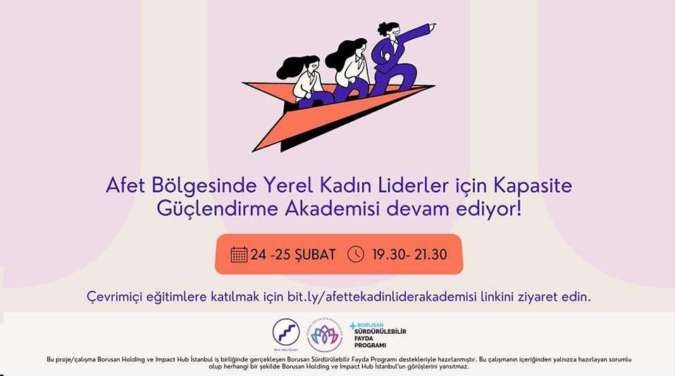 Küresel Eşitlik ve Kapsayıcılık Ağı, Borusan ve Impact Hub iş birliğiyle ‘Mor Merdiven: Afette Yerel Kadın Liderliği’ projesi kapsamında, 24-25 Şubat’ta çevrimiçi kapasite güçlendirme atölyeleri düzenliyor