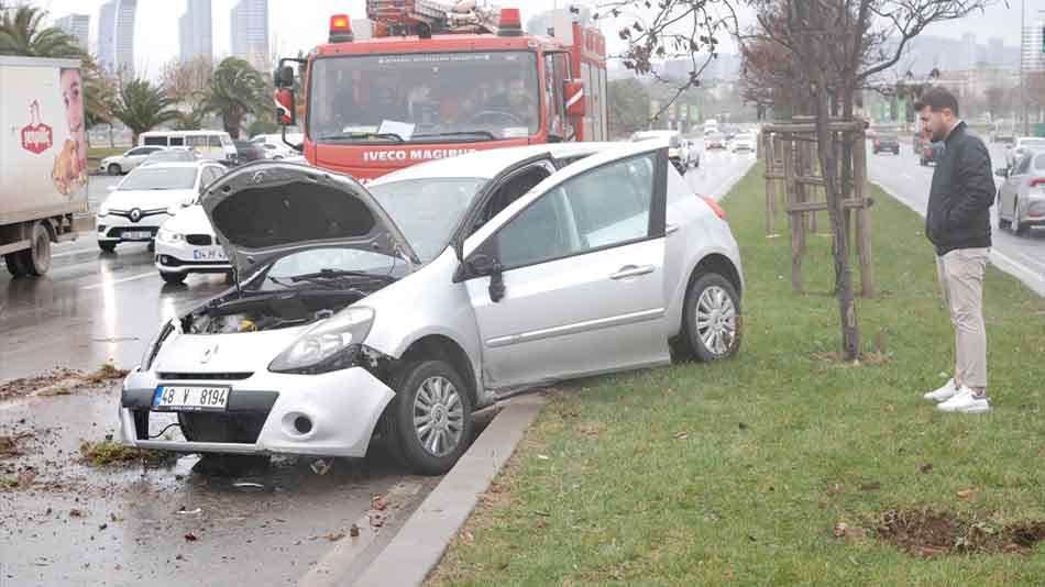 Doğu Mahallesi Sahil Bulvarı 'nda, Kadıköy istikametine seyir halindeki Arif Ç'nin kullandığı 48 V 8194 plakalı otomobil, yağışın da etkisiyle kayganlaşan yolda kontrolden çıkarak refüjdeki ağaçlara çarptıktan sonra karşı şeride geçti.