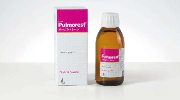Pulmorest şurup, levodropropizin içerir ve öksürüğü keser. Günde 3 kez, 10 ml alınır. Yan etkileri baş ağrısı, mide bulantısı ve daha fazlasını içerir.